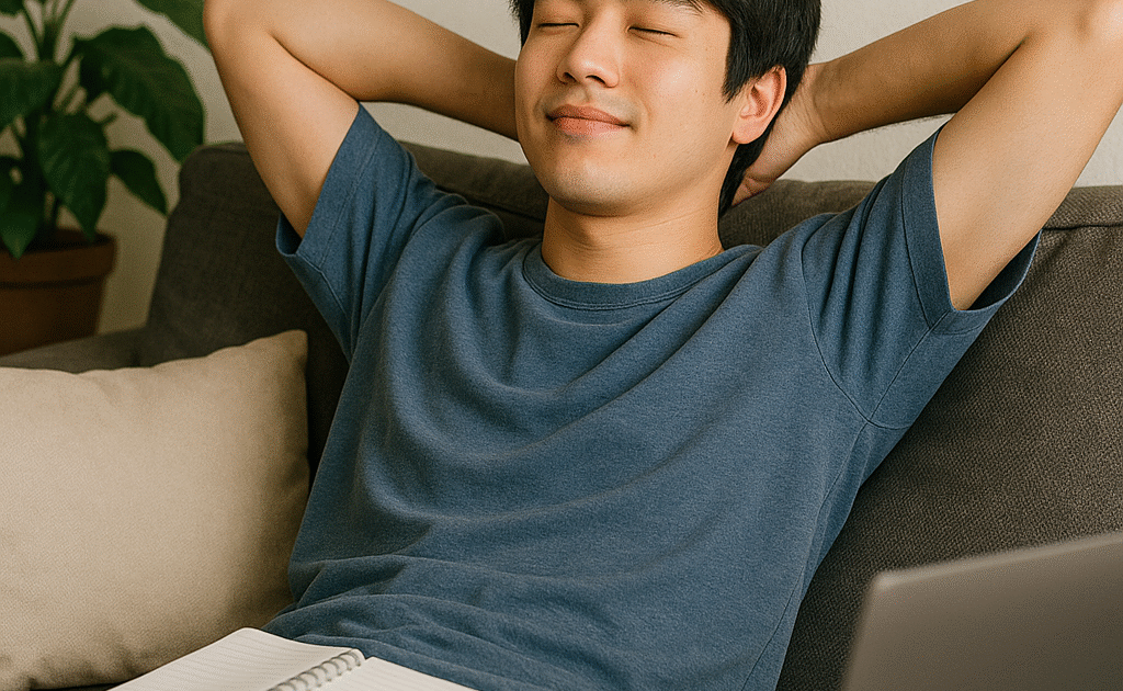 - 姿勢:完全に横にならず、椅子で軽く寄りかかる程度