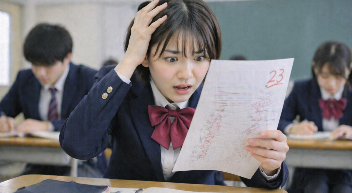 この「思ったより悪い」というショックが生まれるのは、中学と高校で採点基準が全く違うからです。中学の小テストは、授業で習った範囲をちゃんと覚えていれば8割は取れました。でも高校は違う。暗記だけでは通用しない。英単語テストでも、単語の意味だけじゃなく、派生語や使い方まで問われる。数学の確認テストも、公式を当てはめるだけじゃなく、なぜその解法を使うのか理解していないと解けない問題が出る。